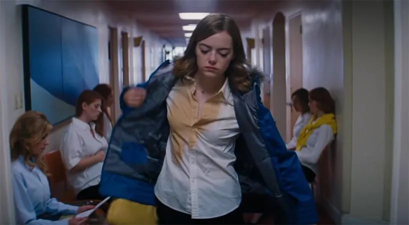 The colour red is a colour associated with dominance. As Mia and Sebastian’s relationship begins to flourish, Seb’s mentoring nature is revealed. He convinces Mia to write her own play, and helps her become more confident in her acting. In this specific shot Mia is seen wearing a red tote bag, whilst both her and Seb are dressed in neutral colours. The contrast between the two colours automatically draws the viewers attention to the red bag. Using this method makes viewers more aware when Mia is next seen wearing a red jacket. However, she then frustratedly takes it off after a crappy audition. Mia’s desire to wear red comes from her fondness towards Sebastian. She wants their relationship to develop, but it fails to – and this is shown through her failure to successfully wear red in a positive context.