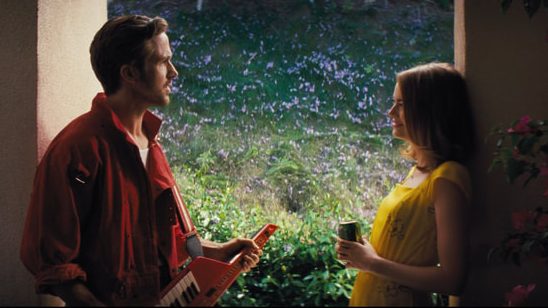 During this scene, Mia meets Sebastian for the third time at an LA party. He is playing the ‘KeyTar’ (a cross between a piano and guitar), and she mocks him for this – requesting the band to play ‘I Ran (so far away)’ by A Flock of Seagulls. After his public humiliation, Seb talks to Mia and admits he was a jerk, and that he is a serious musician. During this conversation they are framed in a rectangle, reminiscent of when Mia first hears him play piano. Seb is dressed in red, and Mia in bright yellow. The yellow dress Mia is pictured in suggests a sense of optimism and happiness, possibly foreshadowing the two’s relationship. Seb’s red jacket imply’s confidence and passion, symbolic of his desire for a musical career. Yellow creates feelings of friendliness whilst red stimulates feelings of excitement and is an attention-grabbing colour.